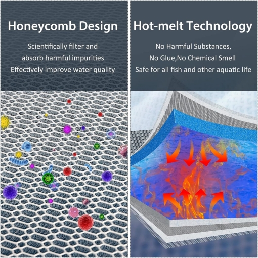 With Upgraded Honeycomb Shape Design, the filter pads for aquarium have strong water permeability, which can scientifically filter and absorb the harmful bacterial impurities, easily establish nitrification system, stabilize the cultivation of nitrifying bacteria, provide clean water and safe living environment for fish and other aquatic life.