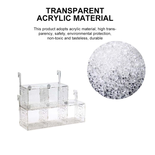 This product is an aquarium acrylic isolation box, which is made of transparent acrylic sheet. Its fine pores ensure the flow of water and also the survival rate of fish. It isolates aggressive fish and protects small fish. The detachable suction cup is convenient for multi-functional suspension.The isolation box is stable, the suction cup is stable, the feeding is convenient, and the installation is simple.