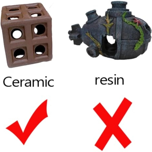 Material: natural ceramic; non-toxic, no smell safe for fish. Ceramic square are highly breathable, suitable for the coverage and reproduction of nitrifying bacteria, so as to improve the water clean.