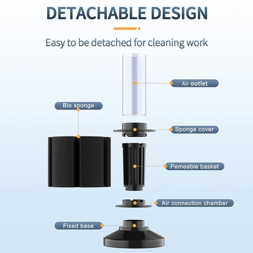 - Provides mechanical and biological filtration for aquariums. The air jet chamber produces many tiny air bubbles that facilitate the gas exchange process and increase the dissolved oxygen level in the tank water.