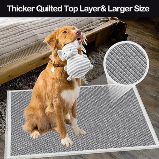 ?【Leak-Proof & Quick-Dry】 Designed for minimal mess, the pads have a leak-proof PE bottom film and plastic border on all sides to prevent leakage and protect floors. The quick-drying surface keeps pets comfortable and prevents tracking of wetness, enhancing cleanliness.