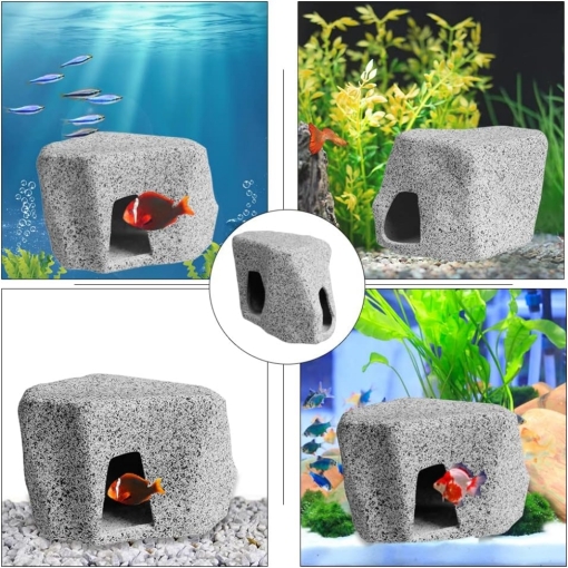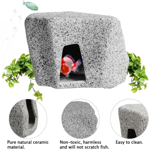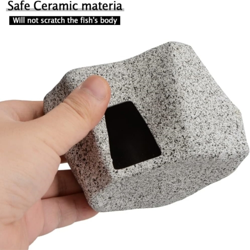 Hiding rock caves decoration with flat bottom and light weight design, our ceramic hideaway hollow stone can be stacked on the ground in your fish tank to provides shelter, hiding spots, entertainment venues for the fish.
