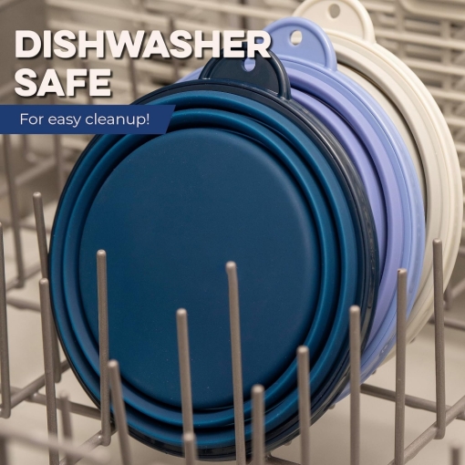 Dishwasher and Food Safe: Collapsible dog bowls are made from 100% BPA-free food-grade silicone with no harmful phthalates. These reusable, eco-friendly travel pet bowls are dishwasher safe for easy cleaning. Use them as everything from cat bowls to dog bowls for large dogs!