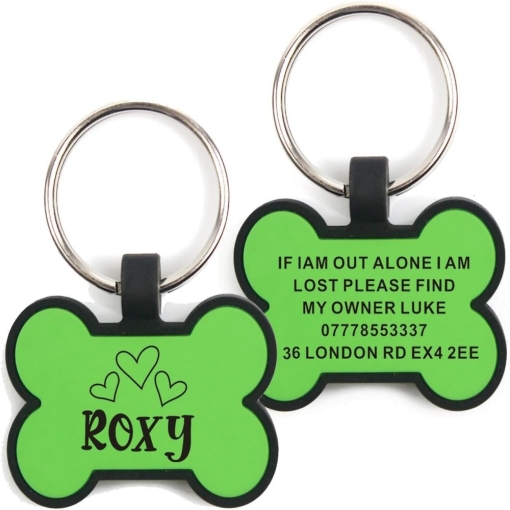 Double Sided Engraving: With clear laser engraving, the dog name tags personalized are eye catching and easy to read. Your pet’s name will be engraved on one side, and your Personalized Message on the other side so your pets won’t get lost.