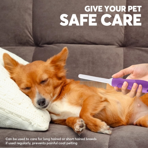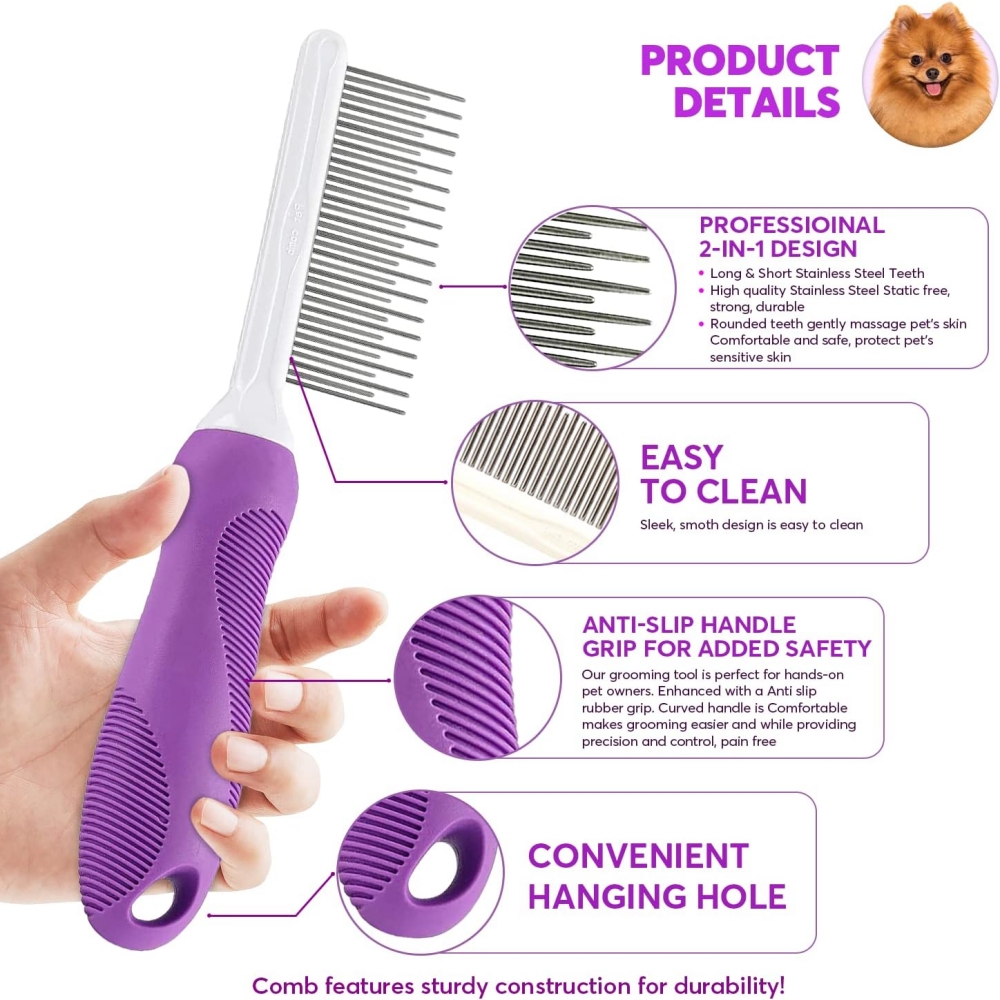 2-IN-1 DETANGLER COMB: Simplify the grooming process by using our dual length pet combs for dematting, detangling & combing. It features both long & short metal teeth, so it cuts time in HALF!