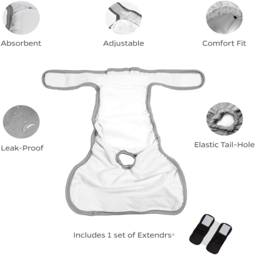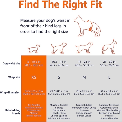 - 30-pack of X-Small disposable wraps for male dogs with an 8 – 10.5-inch waist