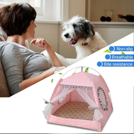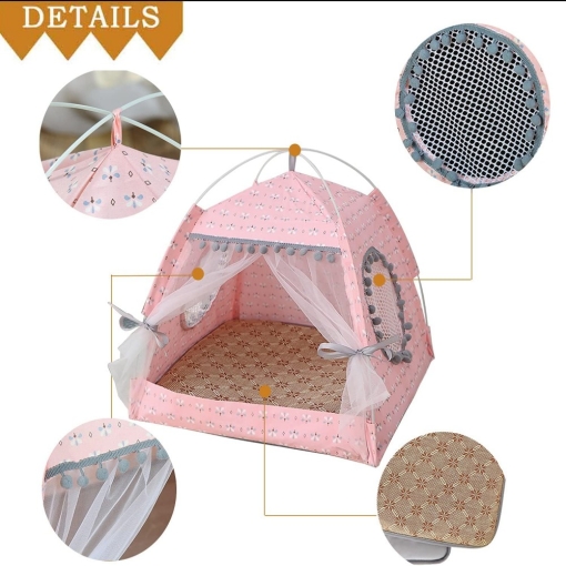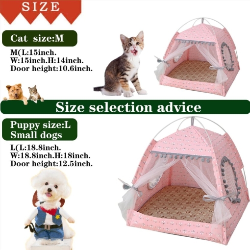 - Princess style cat dog tents bed. Breathable windows and front door, comfortable to sleep inside