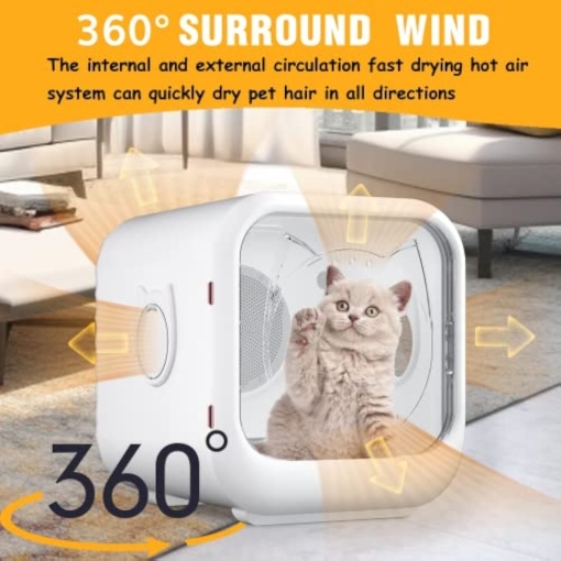 ?Efficient 360° Airflow Circulation – With an innovative 360° internal airflow circulation system, featuring three bottom air vents and a hollow base, a total of five air vents work together to effectively dry your pet’s belly and underarms. Even if your cat is lying down, it will dry quickly. The comprehensive coverage reaches every hard-to-reach area, significantly reducing drying time.
