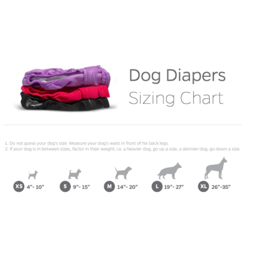 DOG DIAPERS LARGE: Best sized for larger pups with waist size 19″ to 27″. Please measure your dog’s waist right in front of the back legs and compare with our size chart to ensure the best fit for your furbaby.