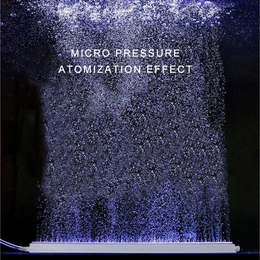 This product is an aquarium low-pressure nano-atomization bubble strip, with dense, uniform and delicate foaming, high-temperature sintering of the air strip, low-pressure drive, not easy to block, you can use its double heads in series, and the micro-pressure atomization effect creates a water curtain visual effect.