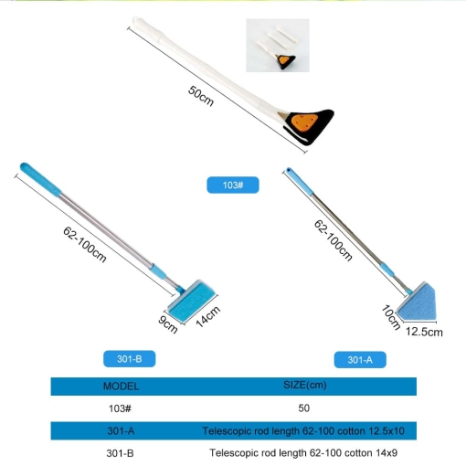 The product adopts a replaceable sponge head design, which is easy to remove for cleaning or replacement. In order to adapt to different fish tanks, the free telescopic rod adopts an adjustable rod that can be freely telescopic. The material of rod body is high-strength texture, which is not easy to break and does not rust.