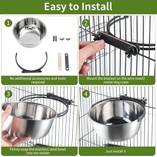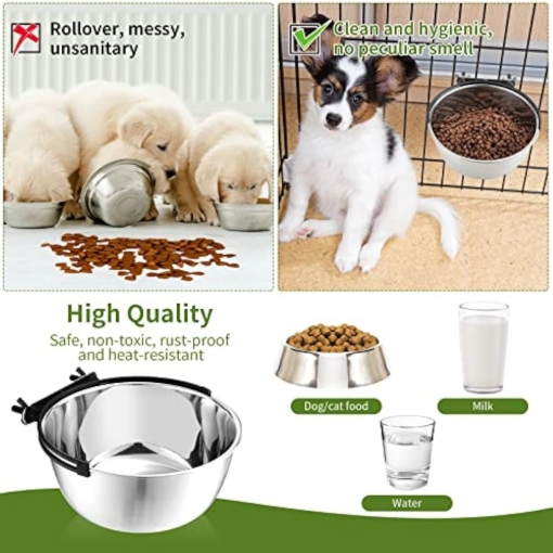 Reliable Material: dog kennel bowls removable are made of stainless steel, safe and odorless, strong and sturdy, anti rust and crack proof, also can prevent odor accumulation, can be applied with confidence.