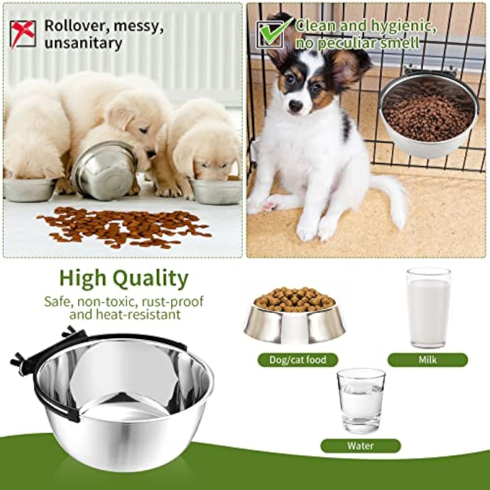Suitable for: hanging dog bowls for kennel have a capacity of about 20 oz, designed for dogs, cats and puppies in kennels, crates and cages; They are suitable for holding water, dry and wet pet food.