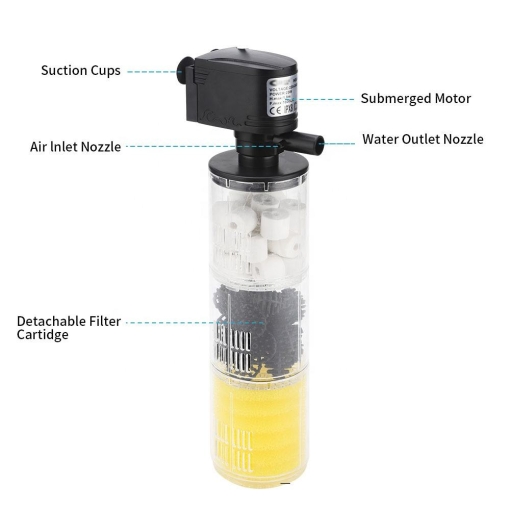 2. The built-in filter provides effective biological and physical filtration for small fish tanks;
