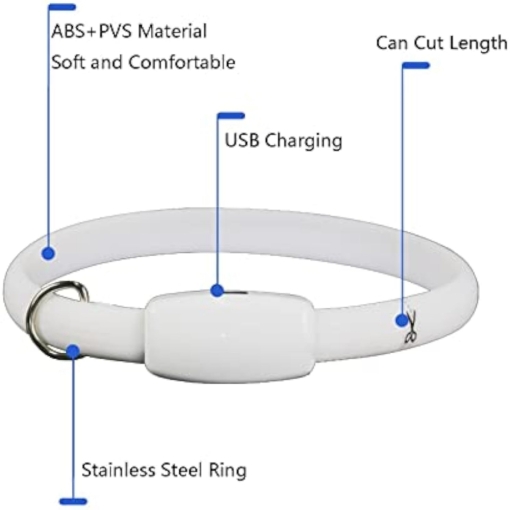ADJUSTABLE PREMIUM MATERIAL:Made of durable ABS+PVS material, it can make your pet more comfortable. The length of the light up dog collar is 65cm,you can set the best size for your dog. It also has a D-ring that can be attached with any dog leash.