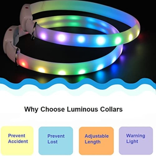 GREAT VISIBILITY & SAFETY LED DOG COLLAR:Light up dog collar comes with super bright led lights.Keeping your dogs safe in the darkness, and you will find your pet more easily highly visible to car drivers, walkers, joggers, cyclists, motorists etc.