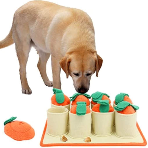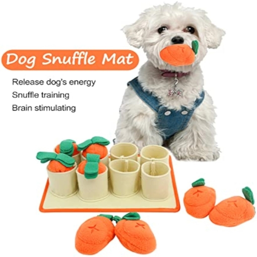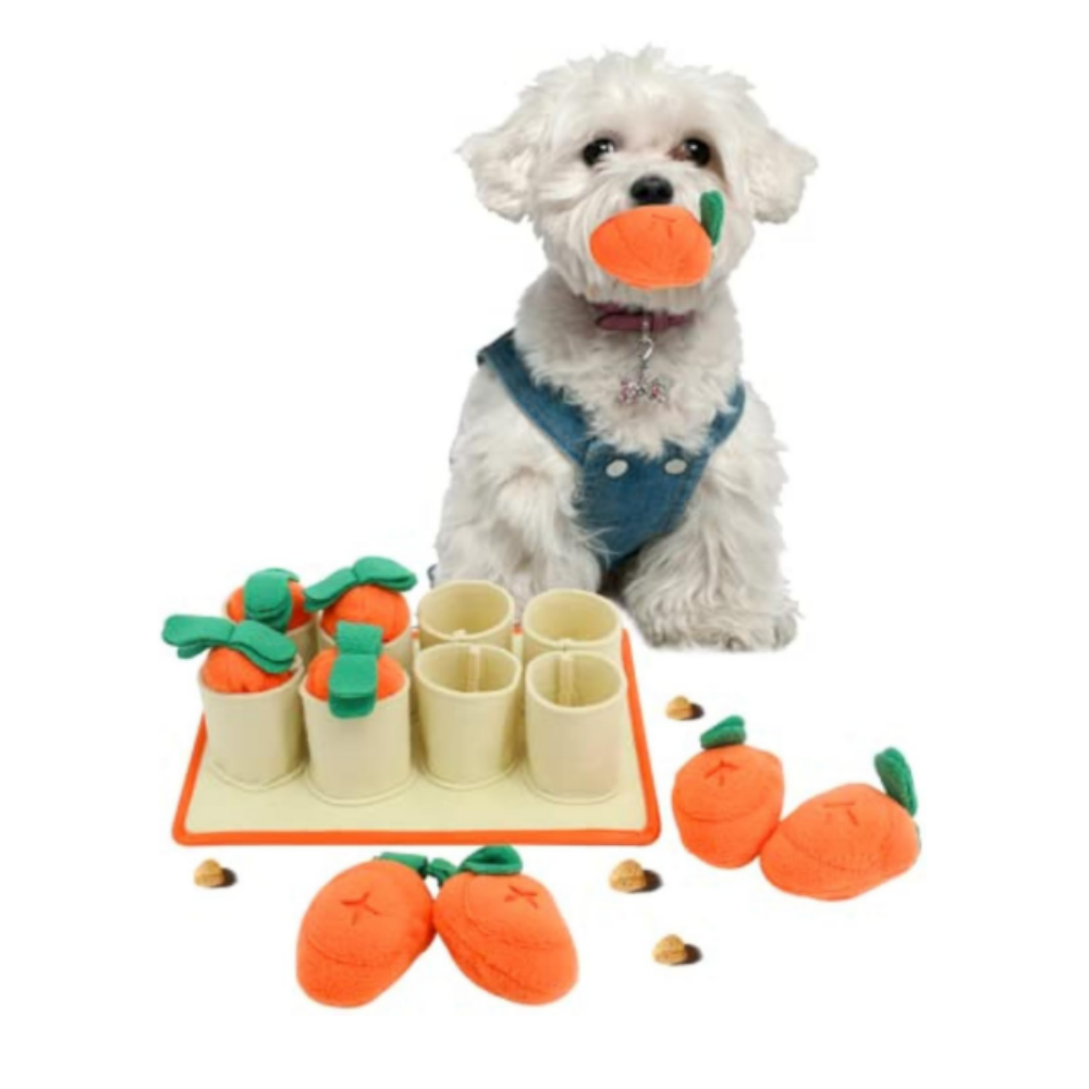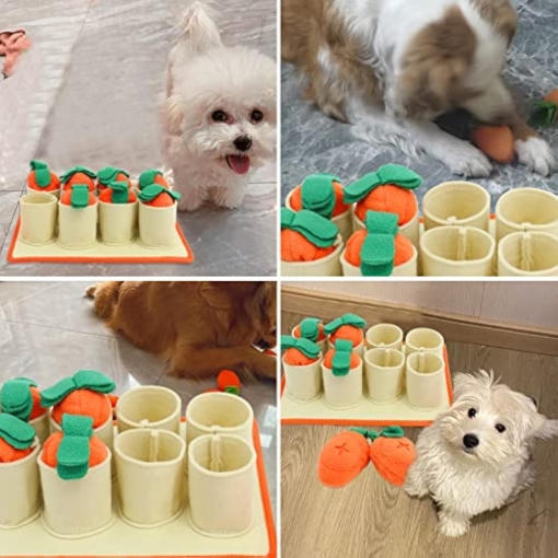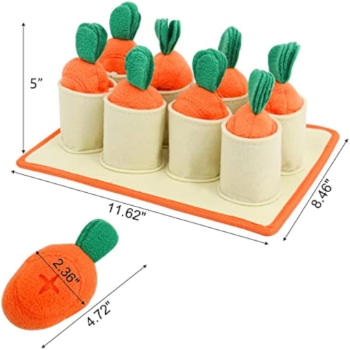 【Lovely Dog Snuffle Mat】This cute dog carrot toy measures approximately 11.4”x8.5”x5”(29×21.5x13cm), which is suitable for most sizes of dogs, whether small or large. The detachable 8 Plush carrot toys can be used as separate small toys for pets.