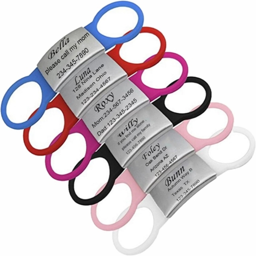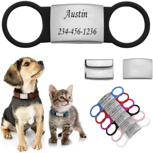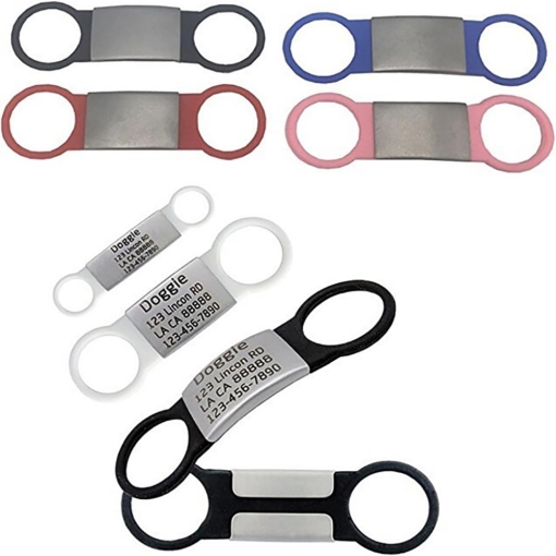 Cute Font Design Silent Pet ID Tags – A well-designed cute fashion name tag for your beloved dog, cat, or other pets. No Jingling silicone band, laser engraved stainless steel pet tags with your pet’s name and contact infomation. Handmade with love.