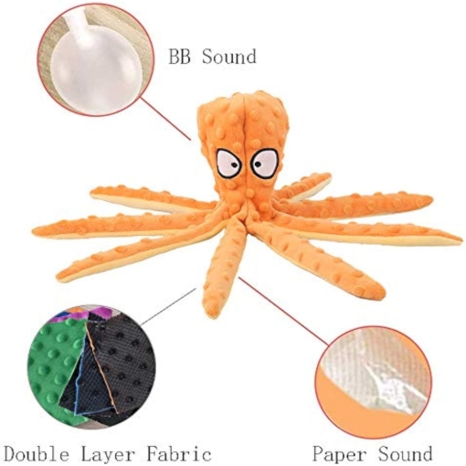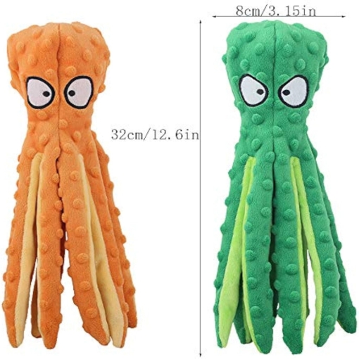 【Special Design】So realistic and funny octopus shape: Dog will like to chew and chase it by itself. It can save a lot of your precious time. Unique simulation sound: it will make an extremely funny cry when your pet chew it. It will bring endless fun to you and your pet. The non-slip design makes pet hold it with their own paw easily.
