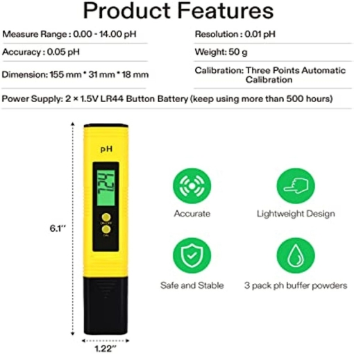 - PH Meter: Full measurement range of pH 0 – 14, reliable and quick readings