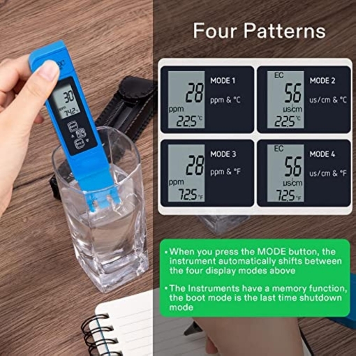 - 3-in-1 TDS Meter: Measurement Range 0-9990ppm, 0-9990µs/cm; Accuracy ± 2%, 0.1- 80.0°C, 32.0-176.0°F; Note: This meter can’t test sea water