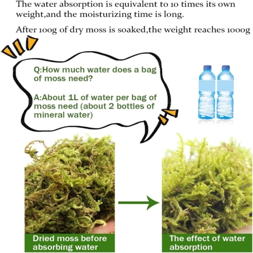 【Safe Moss for Reptiles】:Natural forest moss is rich in nutrients and can be used as an egg-laying and incubation medium, substrate for reptile or amphibians terrariums. Provide moisture for reptiles and keeping your reptile pets comfortable while hibernating, hiding,crawling and sleeping.