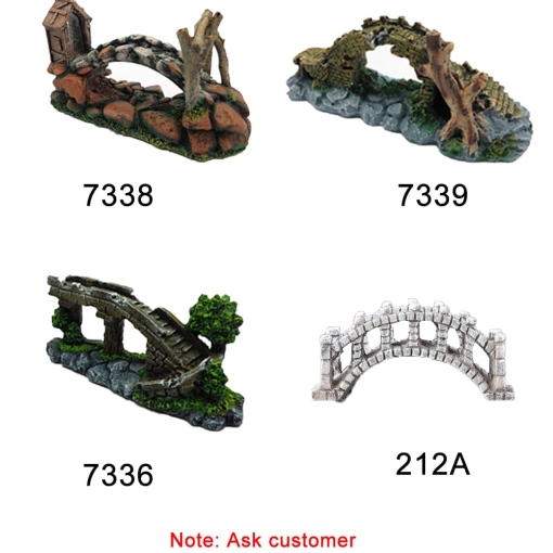 This product is an aquarium simulation arch bridge landscape, made of resin materials, safe and non-toxic, environmentally friendly materials are non-toxic and harmless to fish, beautifying the environment of the aquarium to provide a sheltered alley for fish, a variety of shapes and colors to choose from, modeling,Vivid, natural colors.