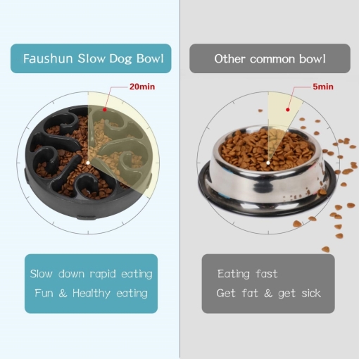 【Easy to clean】Simply hand wash with soap and warm water to remove any residue. This dog bowl can be cleaned in the dishwasher and is very easy to clean and use. This slow bowl can hold about 1.5-2 cups of dry dog food.