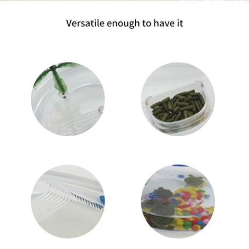 This product is made of PP high-quality material, with high transparency for panoramic viewing, strong and durable, and can clearly watch turtles. Portable design with cover, easy to carry when going out. The top cover is hollow design. It is suitable for raising small pets such as turtles, goldfish, reptiles, etc.