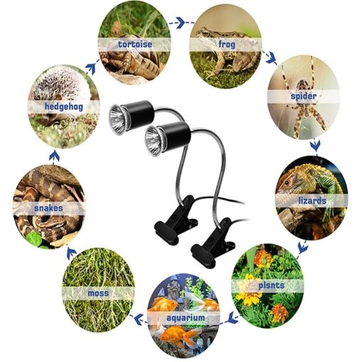 2.Can be used with high temperature resistant ceramic lamp, light bulb, heater, UV lamp, infrared emitter etc. 3.360 Degree Adjustable Heat Lamps Holder Stand with clip design which with strong stability. Independent ON/OFF Switch, can freely adjust the brightness and temperature of the lamp, safe and energy saving. 4.Perfect for Reptiles, Amphibians and Small Animals such us Turtles, Lizard, Snake, Spider, Rabbits, Hedgehog, Birds, Hamsters,Chicken Coops and so on. They will all enjoy the warmth without the light. |