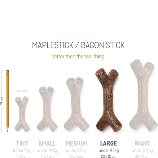 BETTER THAN REAL STICKS – Real sticks are a dirty, splintering mess. The Bacon Stick’s unique shape means it’s always easy to grab hold and get a good chew going. Upgrade your fetch game.